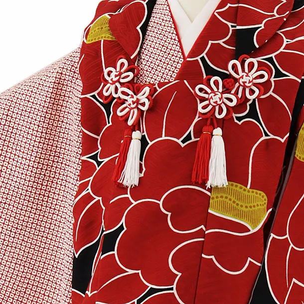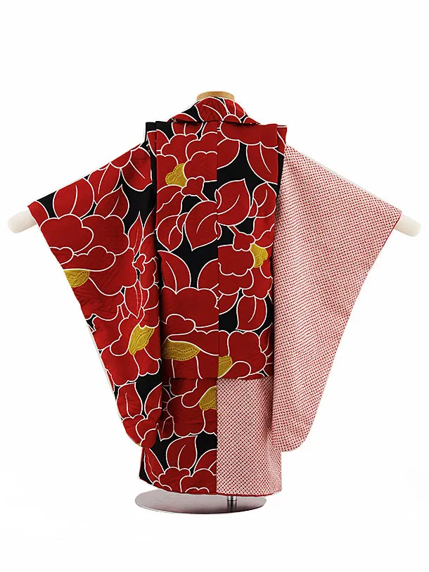 七五三レンタル(3歳女児被布)4652【正絹】片身替り黒に椿