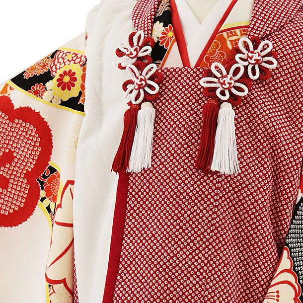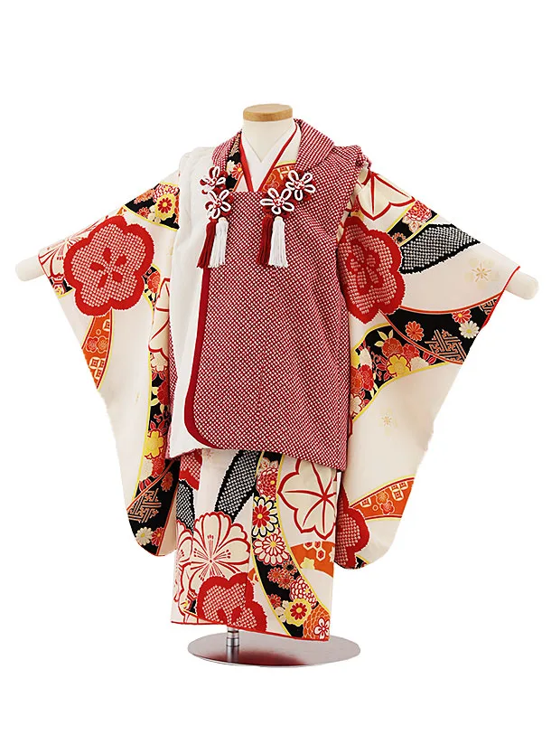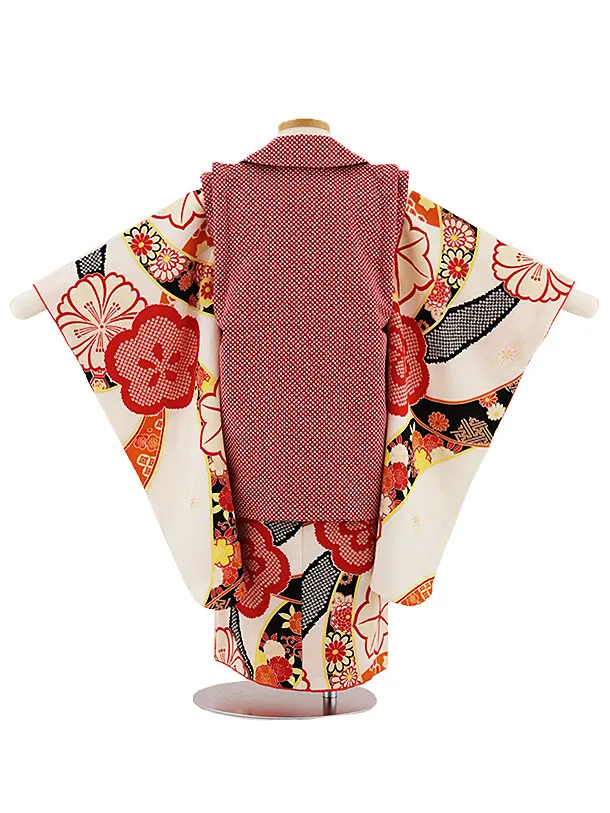 七五三レンタル(3歳女児被布)4659 赤×白地 梅と熨斗