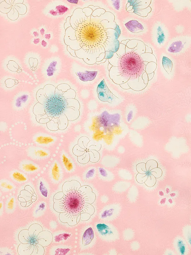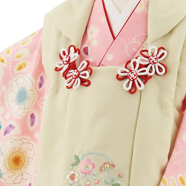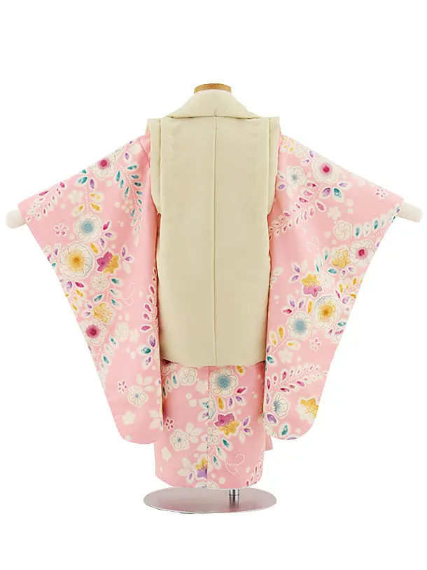 七五三レンタル(3歳女児被布)4667 ベージュ刺繍桜×ピンク辻が花調