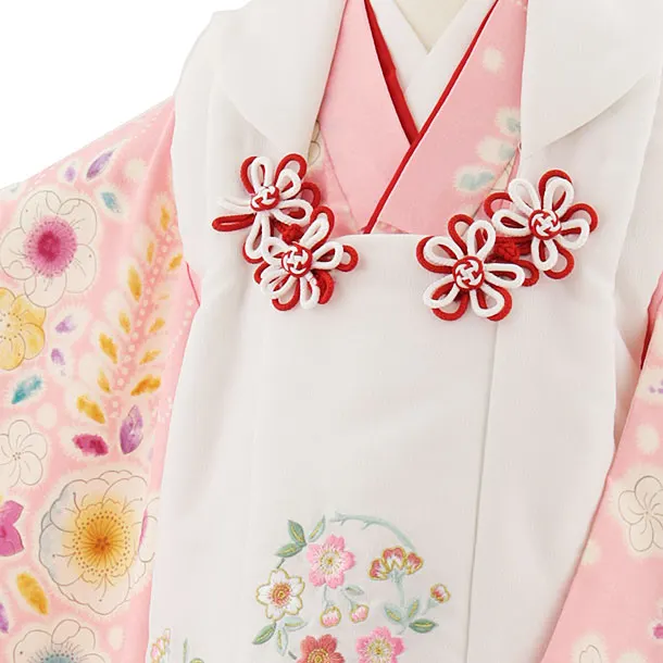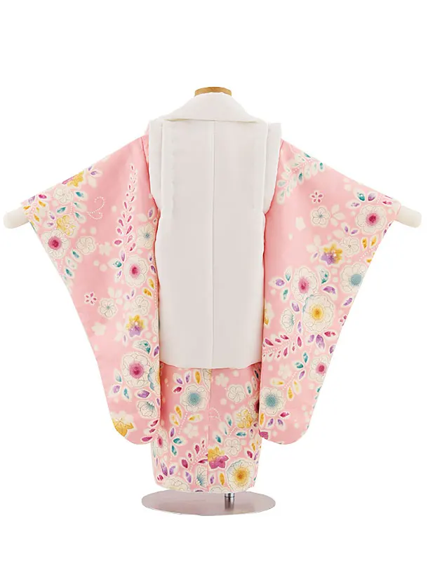 七五三レンタル(3歳女児被布)4668 白刺繍桜×ピンク辻が花調