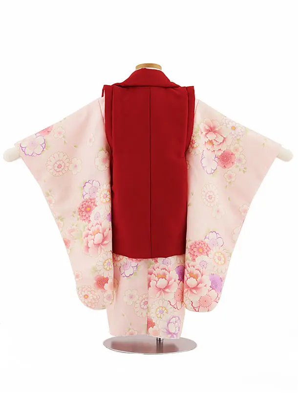 七五三レンタル(3歳女児被布)4670 赤刺繍桜×ピンク菊桜牡丹