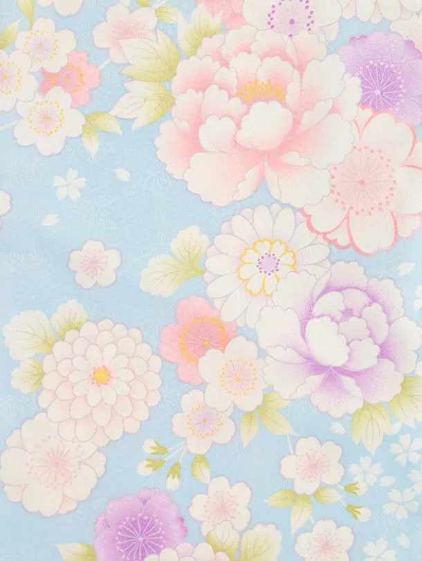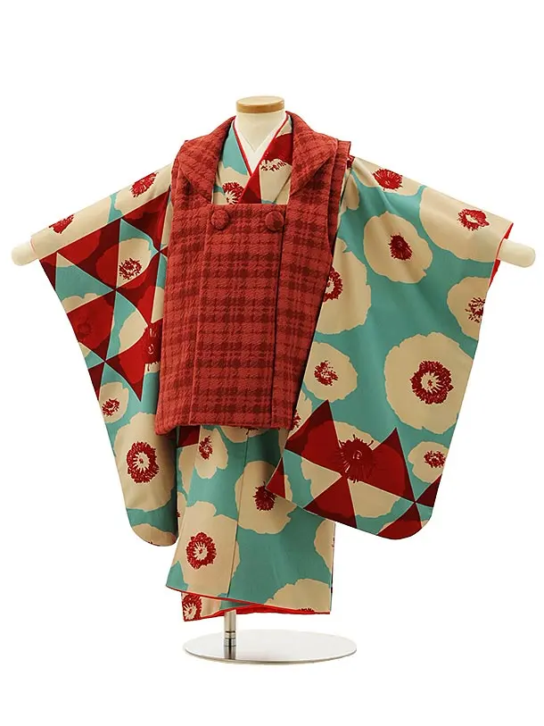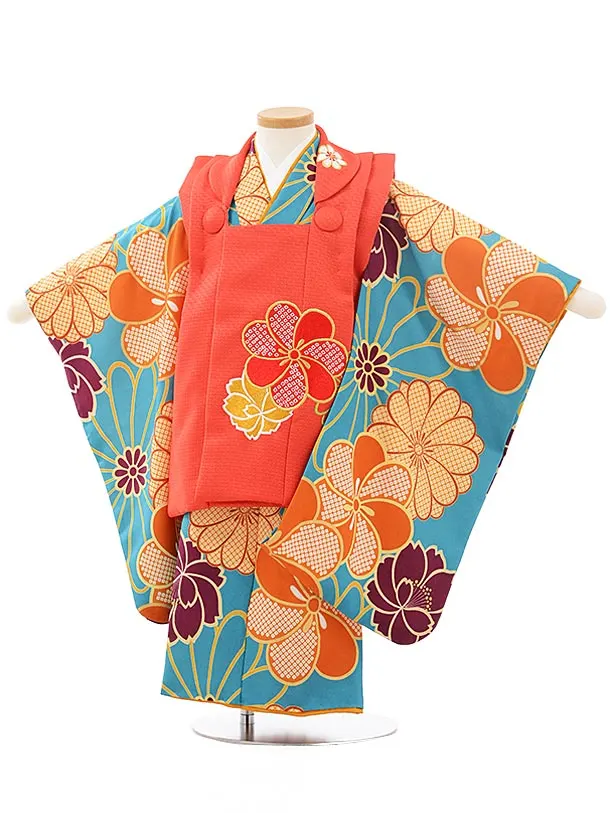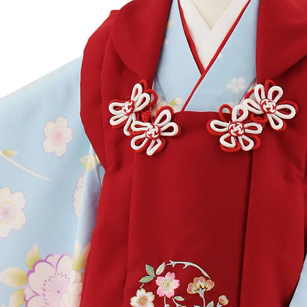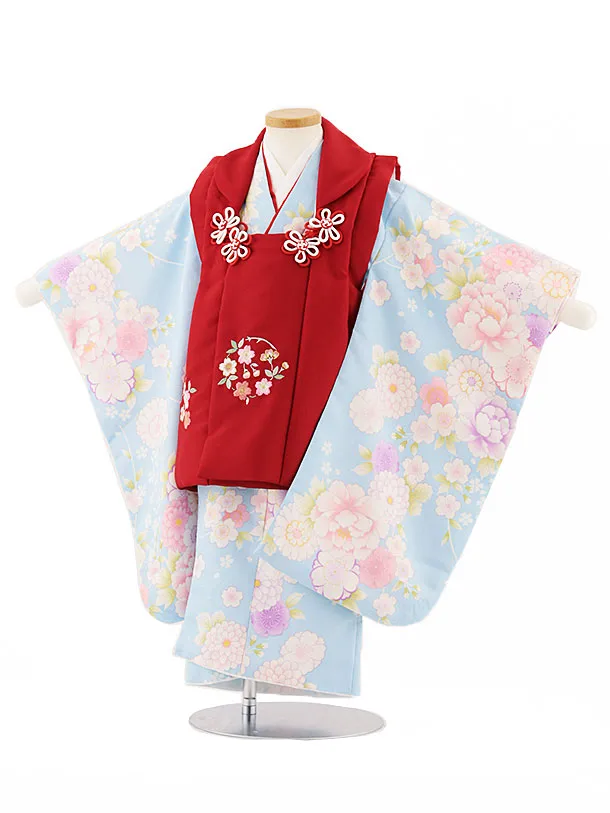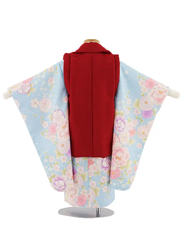七五三レンタル(3歳女児被布)4675 赤刺繍桜×水色菊桜牡丹