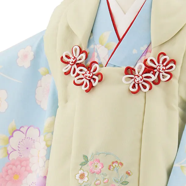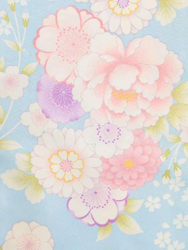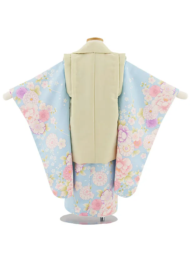七五三レンタル(3歳女児被布)4676 ベージュ刺繍桜×水色菊桜牡丹