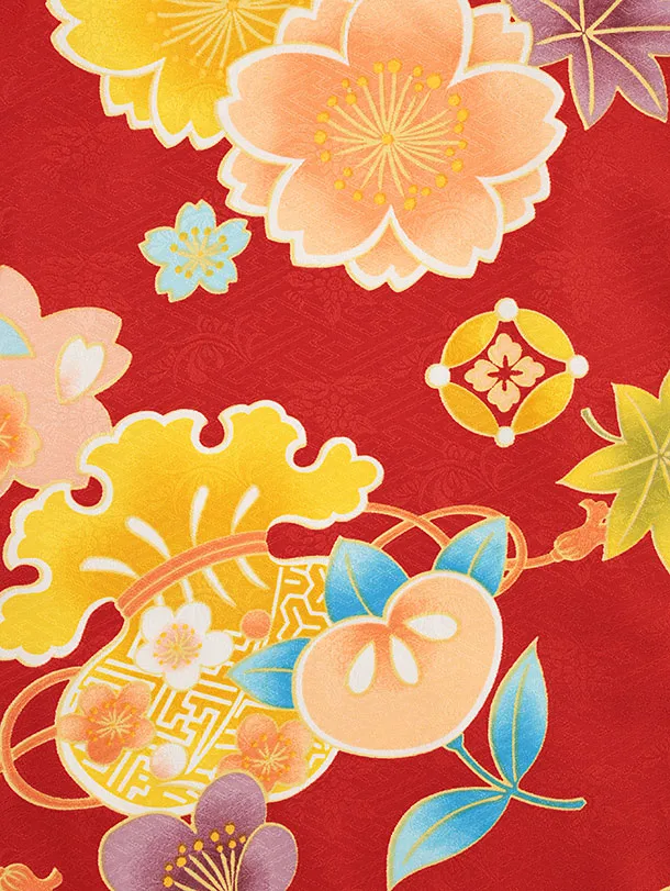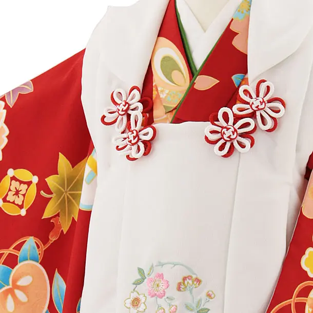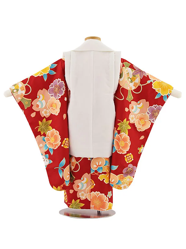 七五三レンタル(3歳女児被布)4682 白刺繍桜×赤地桜宝尽くし