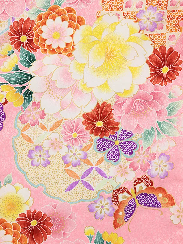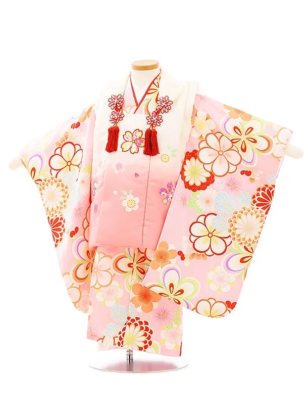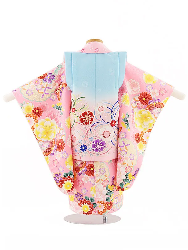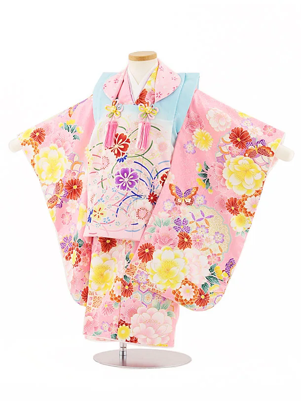 七五三(3歳女児被布)4707 ピンク×ピンク花と蝶