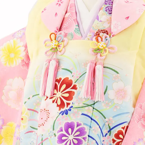 七五三(3歳女児被布)4709 水色×ピンク花と蝶