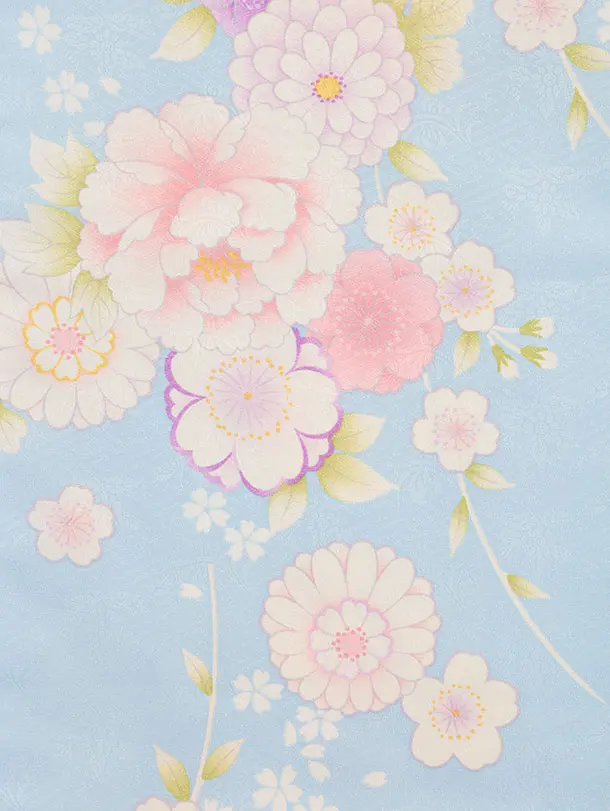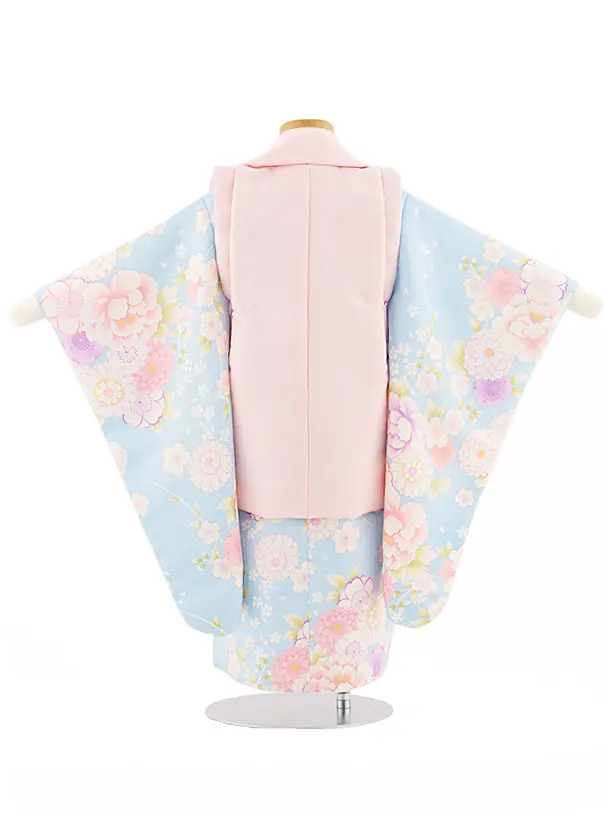七五三(3歳女児被布)4712 ピンク刺繍桜×水色菊桜牡丹