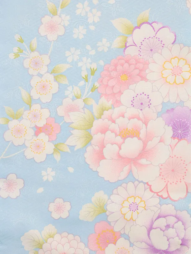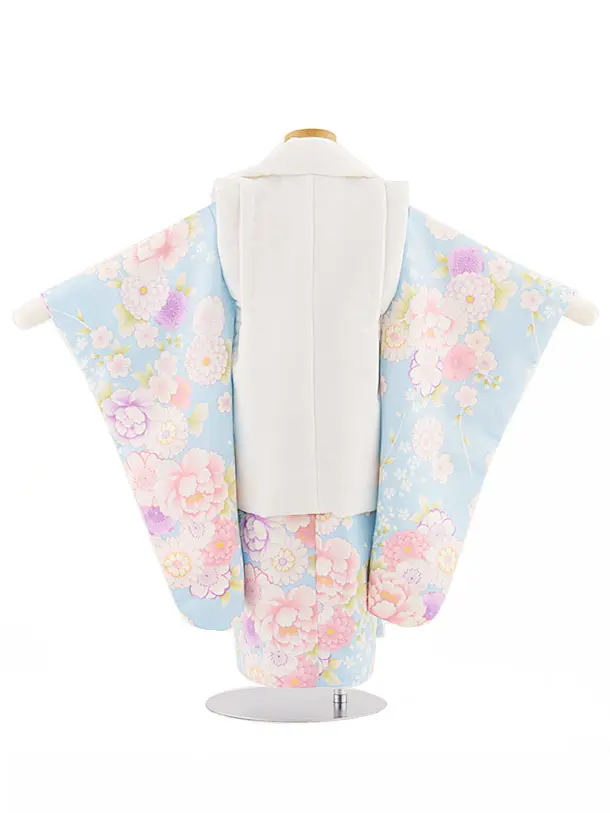 七五三(3歳女児被布)4716 白刺繍桜×水色菊桜牡丹