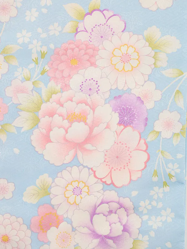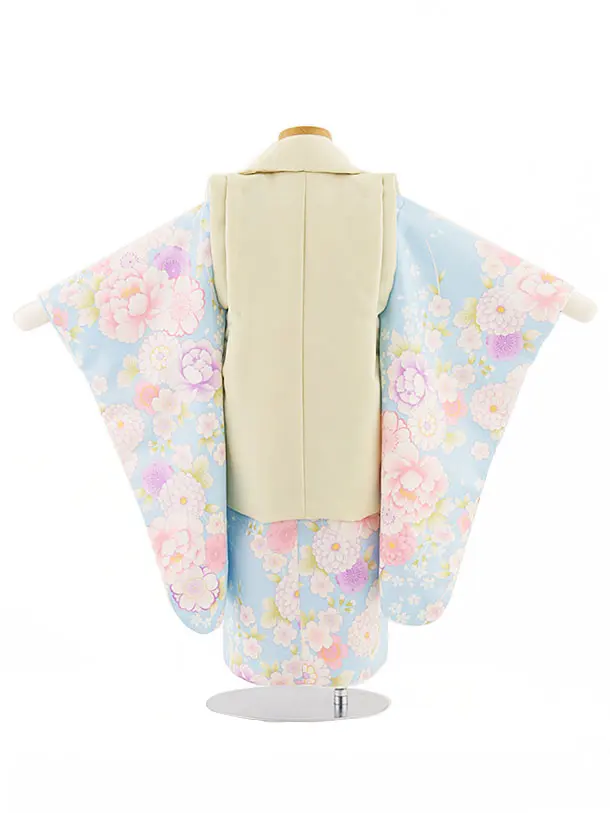 七五三(3歳女児被布)4720 ベージュ刺繍桜×水色菊桜牡丹