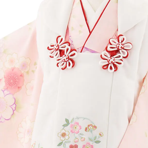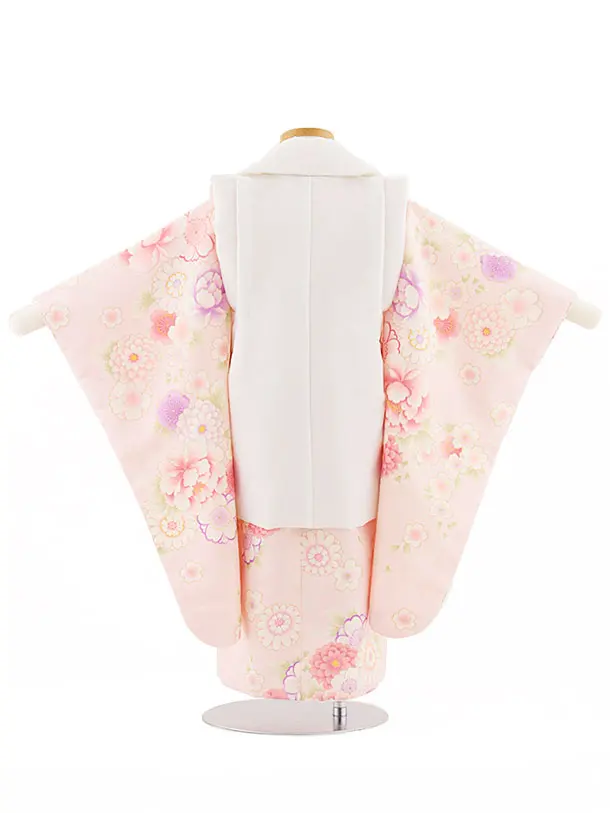 七五三(3歳女児被布)4722 白刺繍桜×ピンク菊桜牡丹