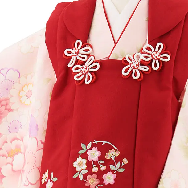 七五三(3歳女児被布)4727 赤刺繍桜×ピンク菊桜牡丹