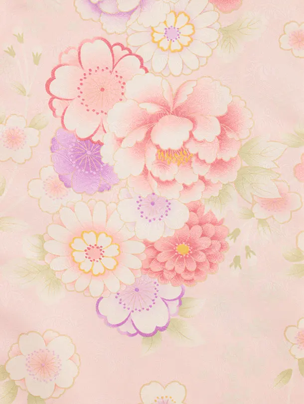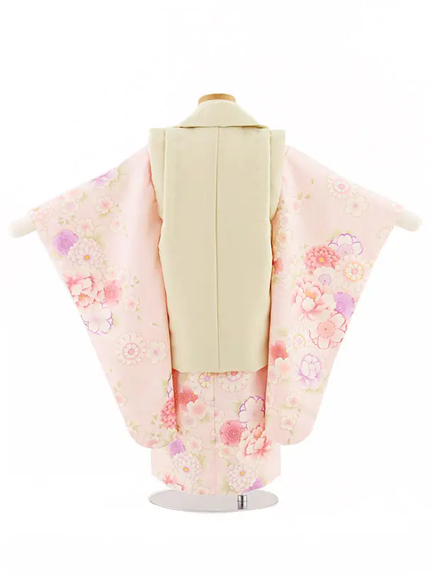 七五三(3歳女児被布)4728 ベージュ刺繍桜×ピンク菊桜牡丹