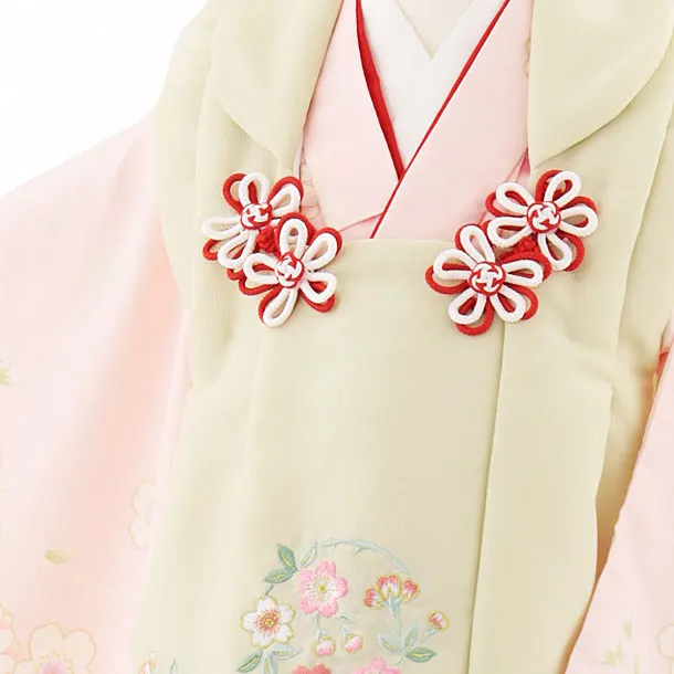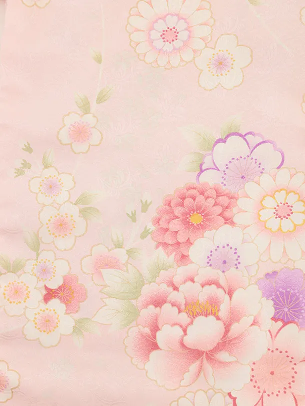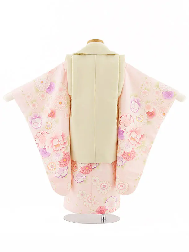 七五三(3歳女児被布)4729 ベージュ刺繍桜×ピンク菊桜牡丹