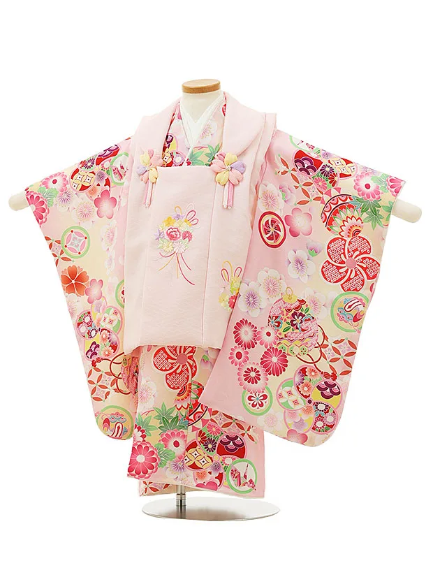 七五三(3歳女児被布)4730 ピンク刺繍桜×菊桜牡丹