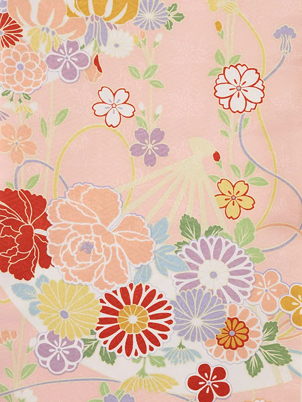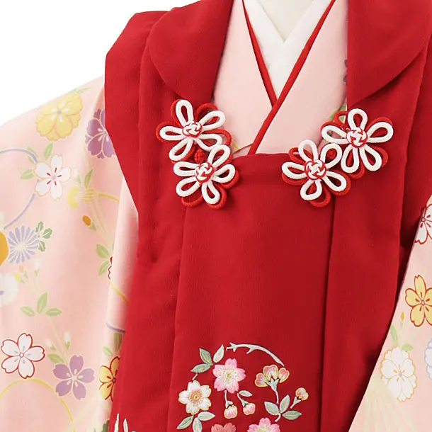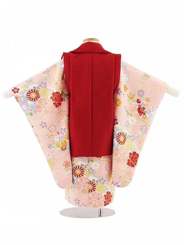 七五三(3歳女児被布)4733 赤刺繍桜×ピンク扇と古典花