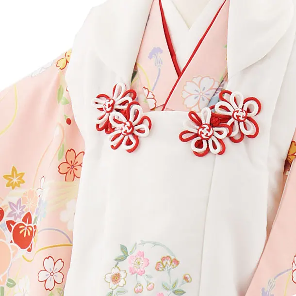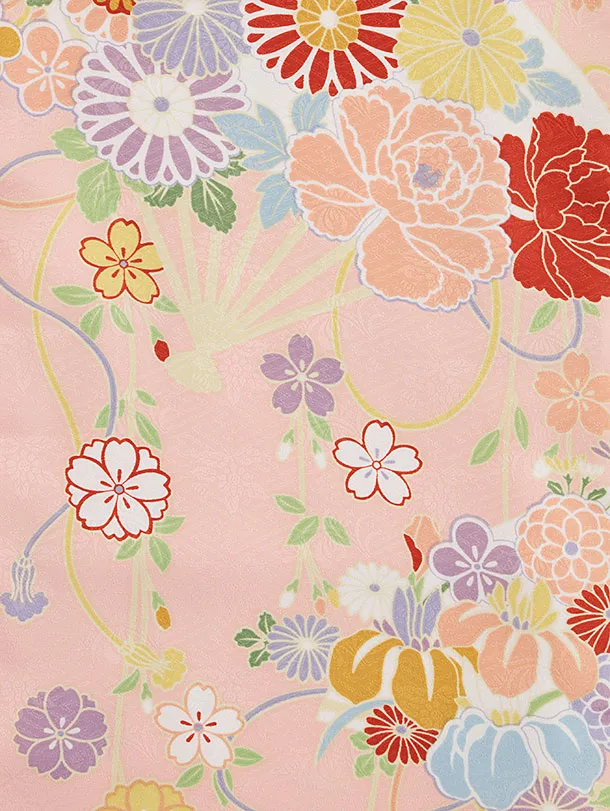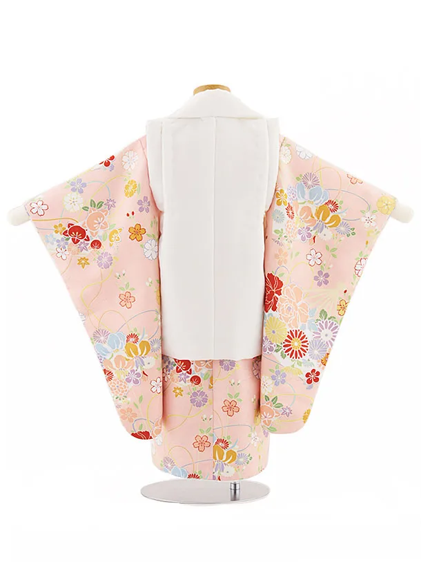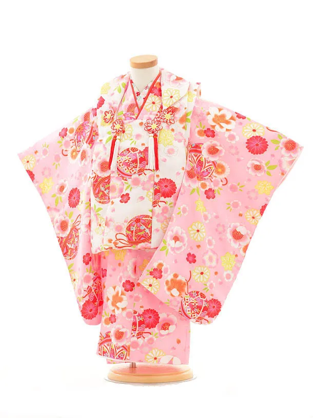 七五三(3歳女児被布)4736 白刺繍桜×ピンク扇と古典花