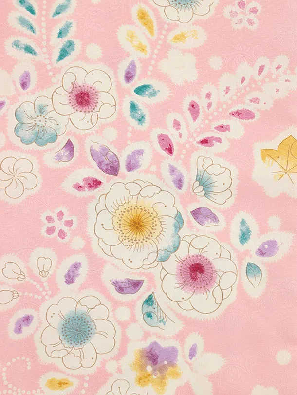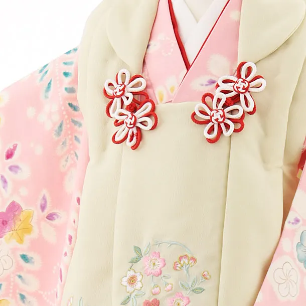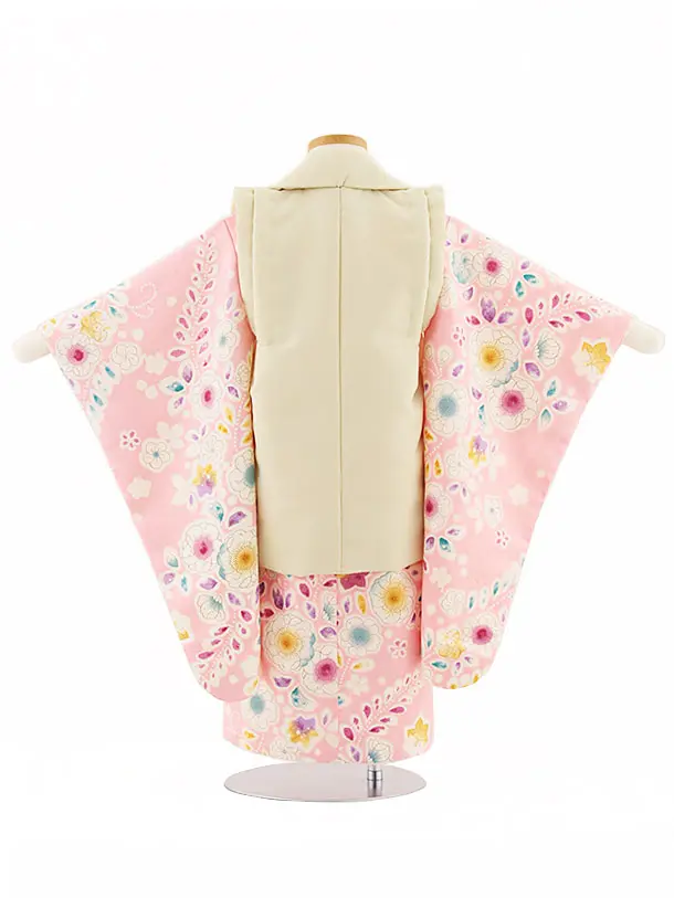 七五三(3歳女児被布)4743 ベージュ刺繍桜×ピンク辻が花調