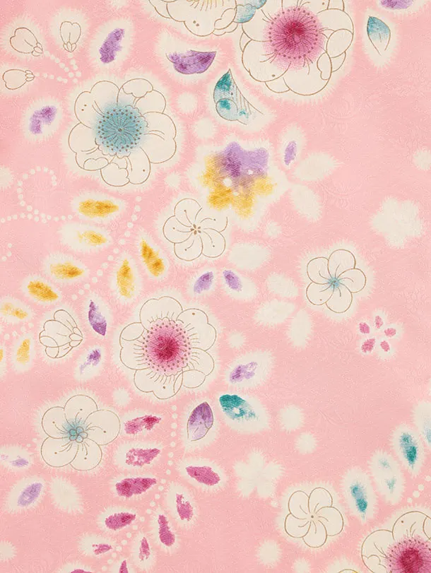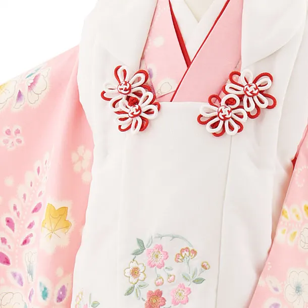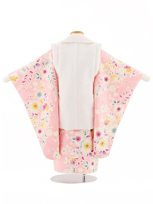 七五三(3歳女児被布)4744 白刺繍桜×ピンク辻が花調