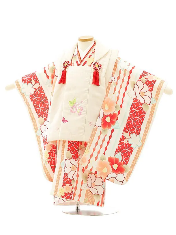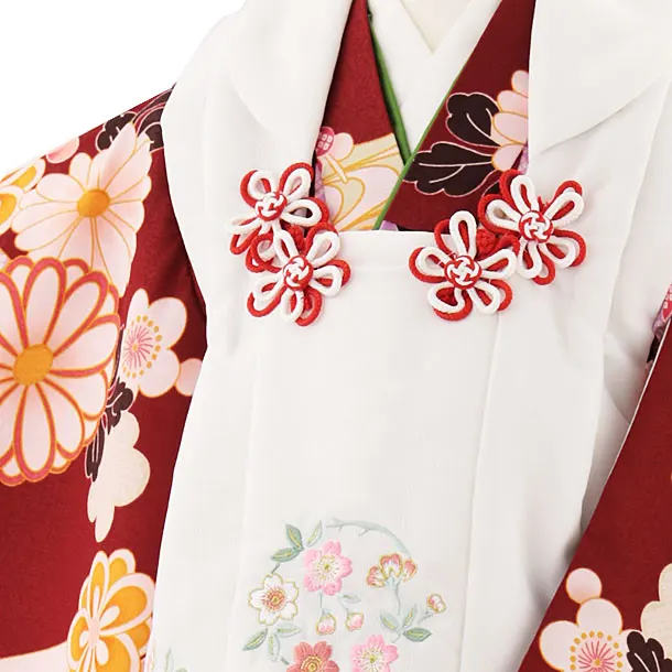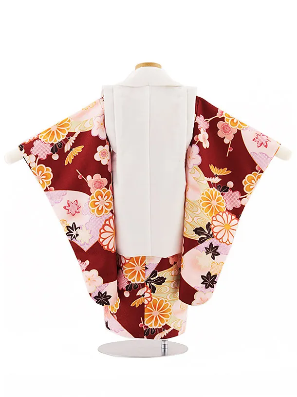 七五三(3歳女児被布)4753 白刺繍桜×ボルドー扇面花柄