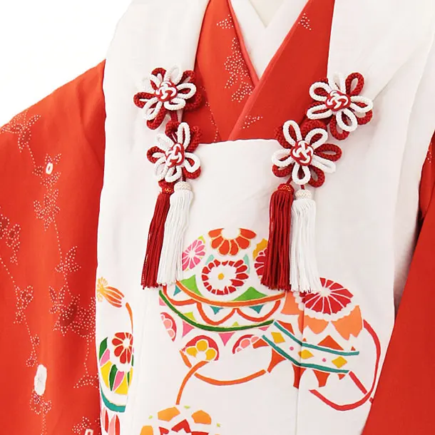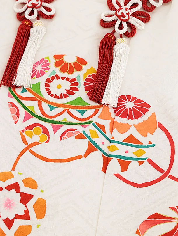 七五三レンタル(3歳女児被布)4767【正絹】白地鞠×赤地 梅