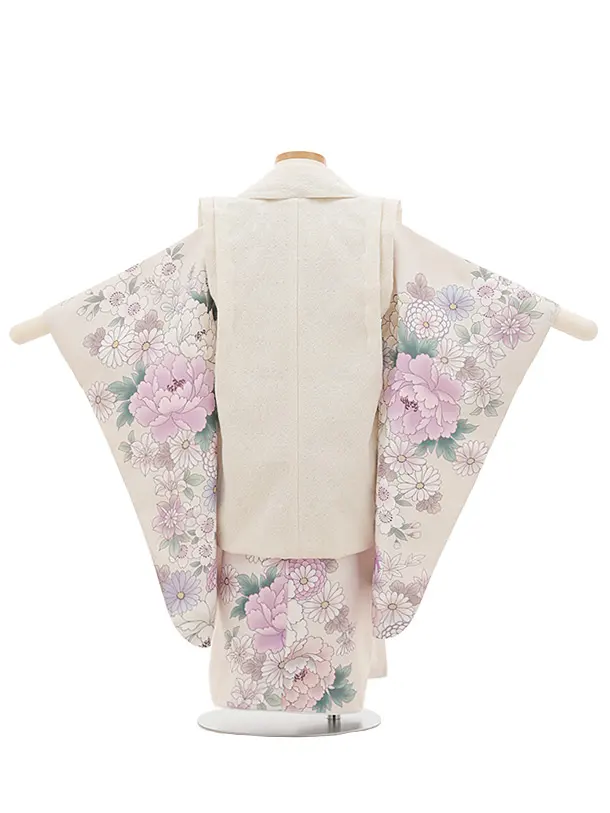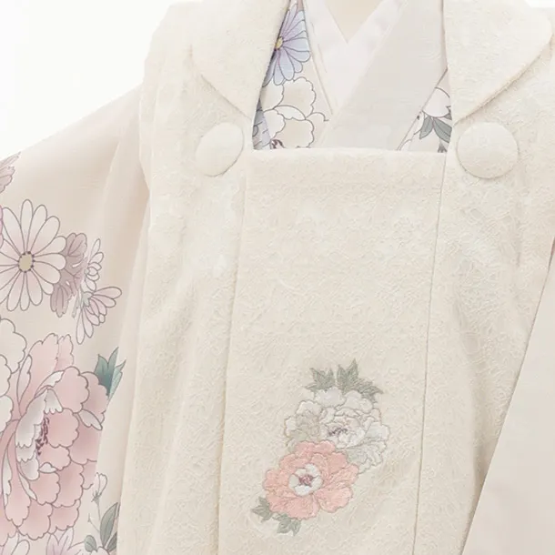 七五三レンタル(3歳女児被布)4775 アイボリー×薄ベージュ牡丹