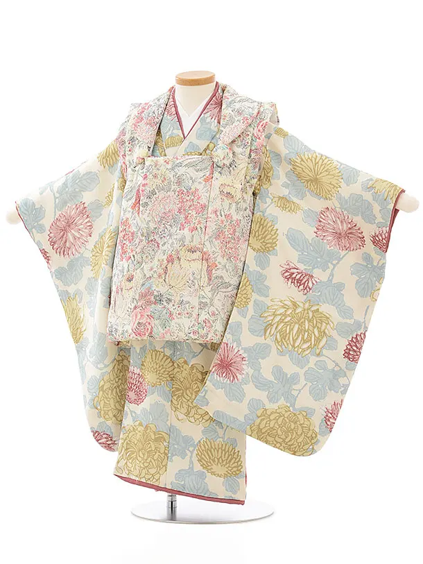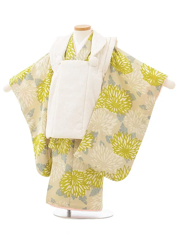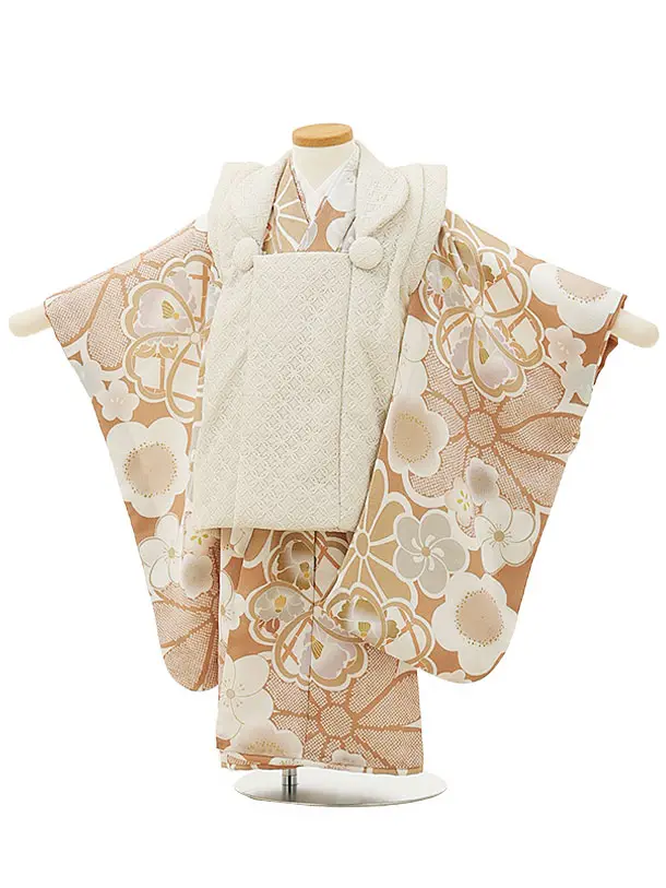 七五三レンタル(3歳女児被布)4778 クリーム×薄ベージュ牡丹