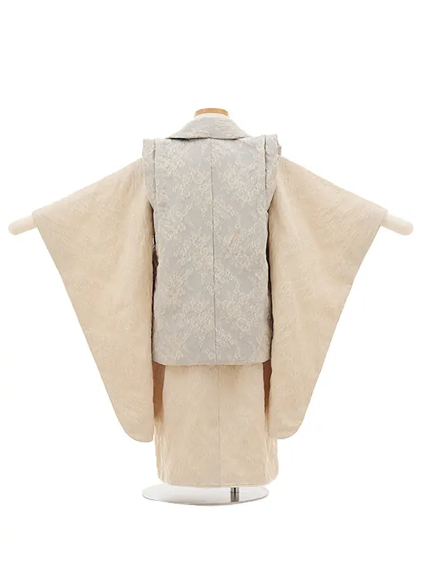 七五三(3歳女児被布)4807 ぷちぷり アイスブルー×ベージュジャガード