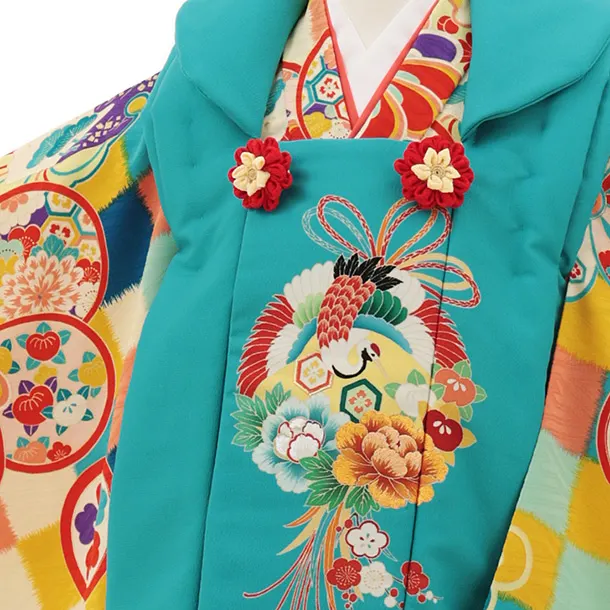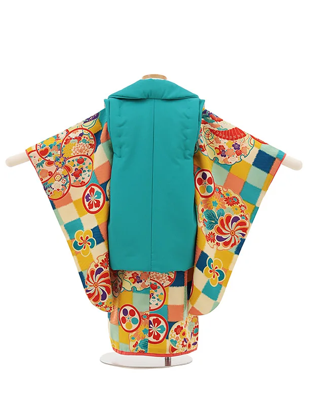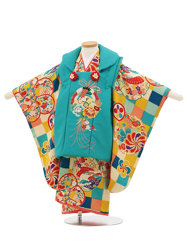 七五三レンタル(3歳女児被布)4809 LOWRYS FARM ターコイズ 薬玉