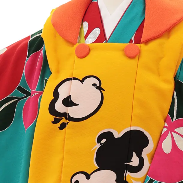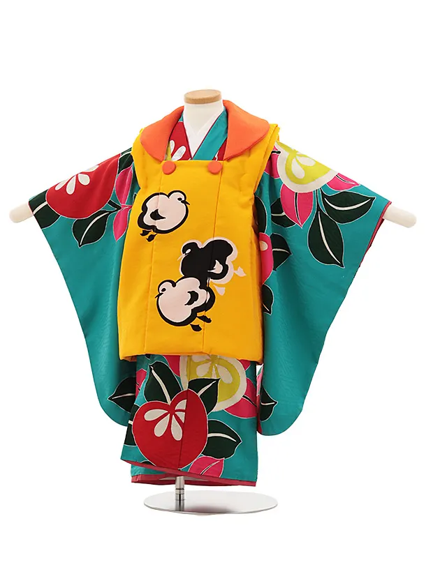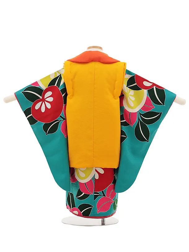 七五三(3歳女児被布)4813 モダンアンテナ オレンジ千鳥×ターコイズ橘