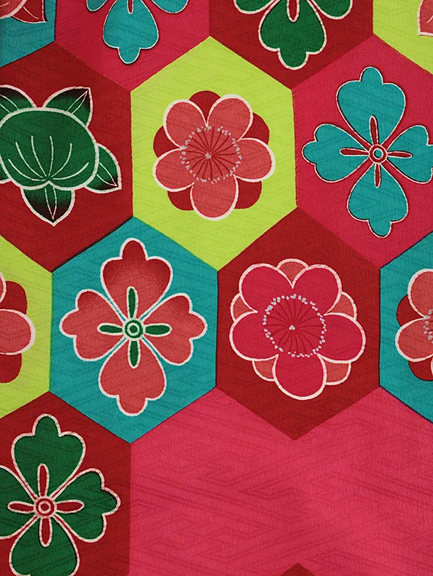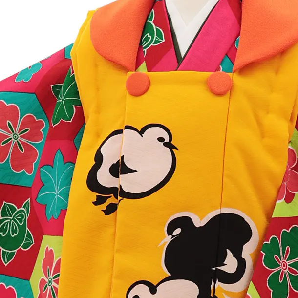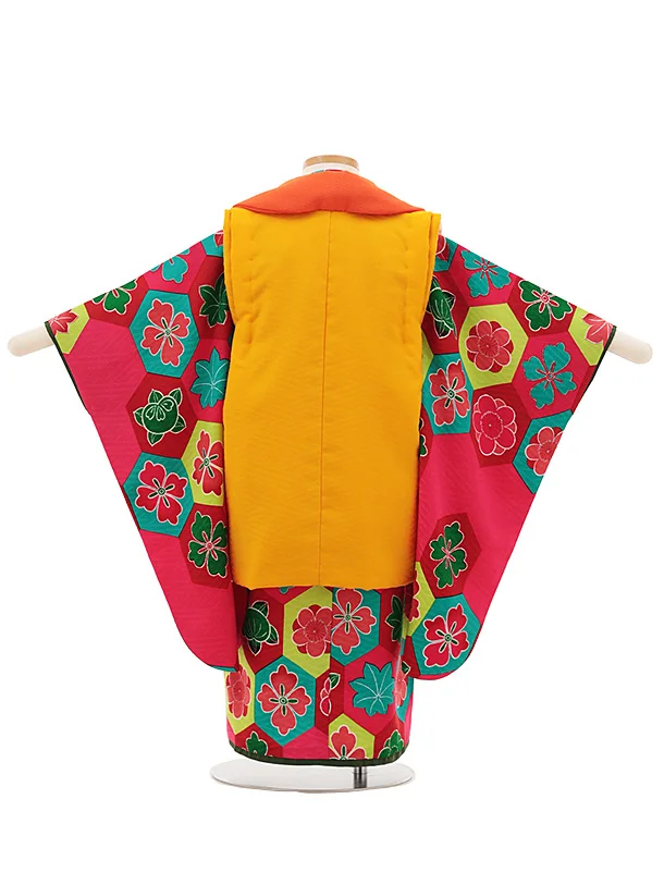 七五三レンタル(3歳女児被布)4815 モダンアンテナ オレンジ千鳥×ピンク亀甲