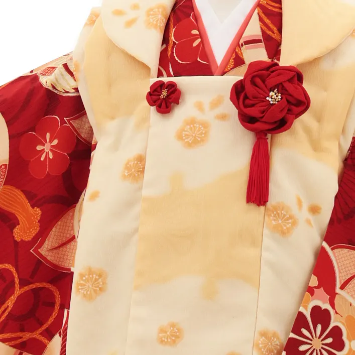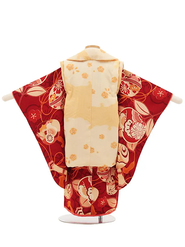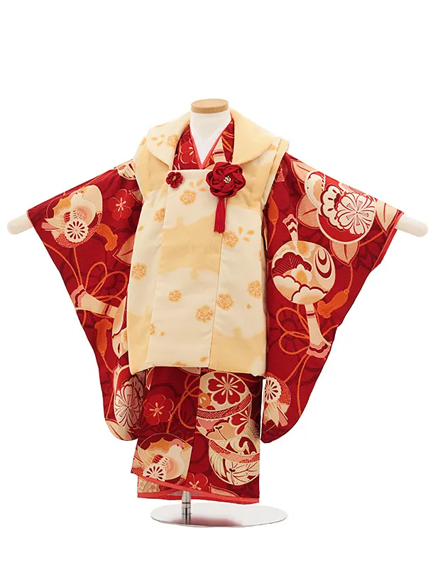 七五三レンタル(3歳女児被布)4818 京舞 薄橙色×赤古典