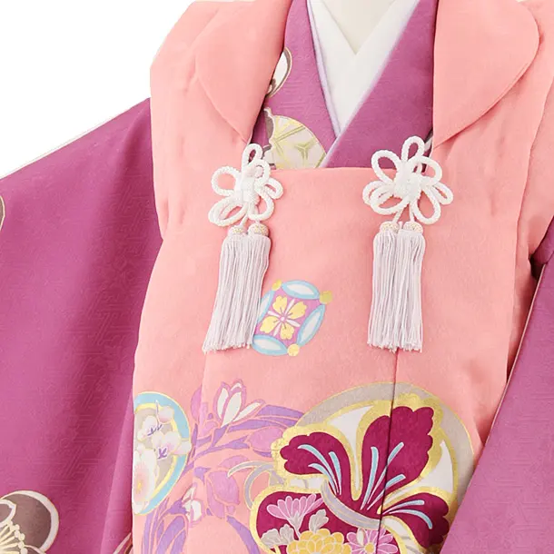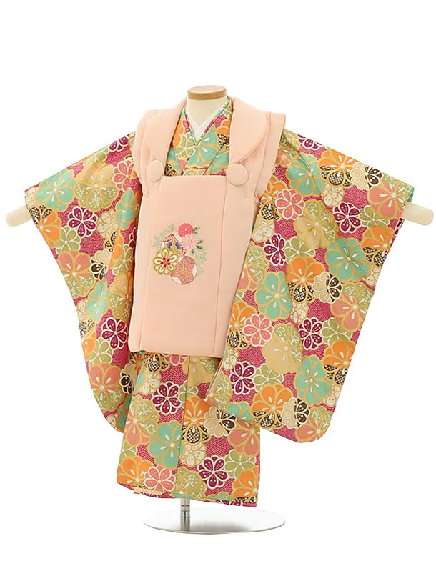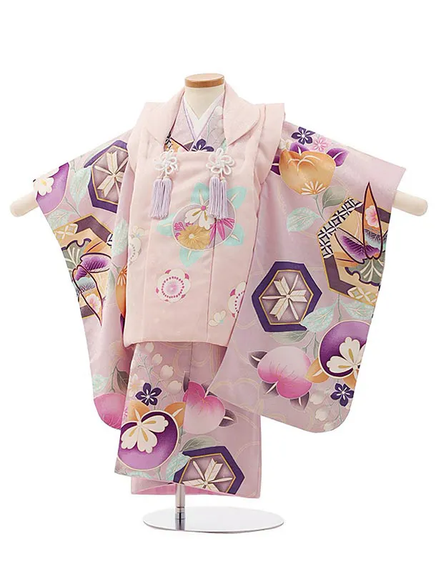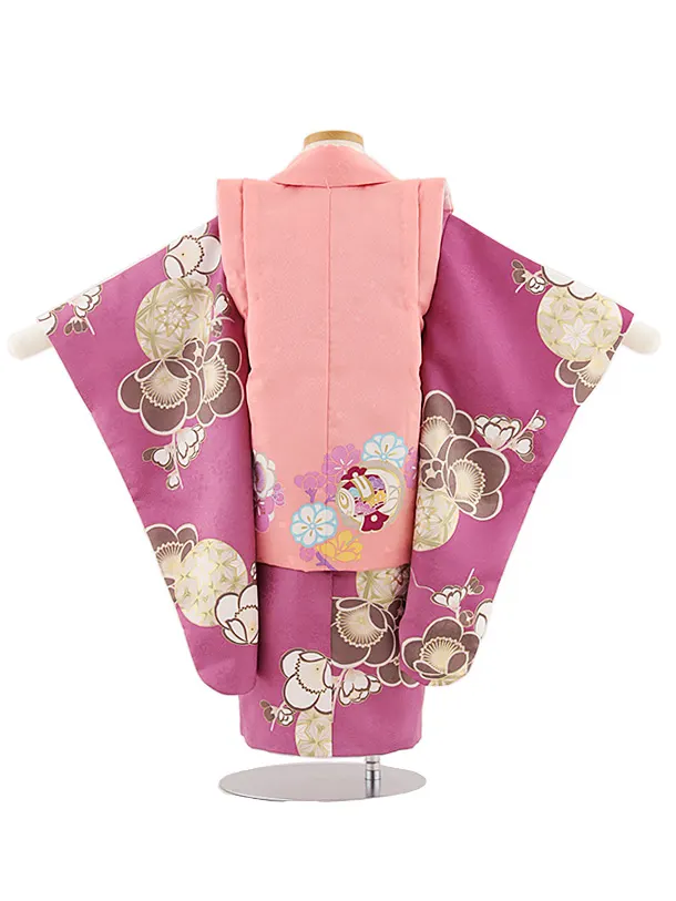 七五三レンタル(3歳女児被布)4821 サーモンピンク×パープル梅鞠