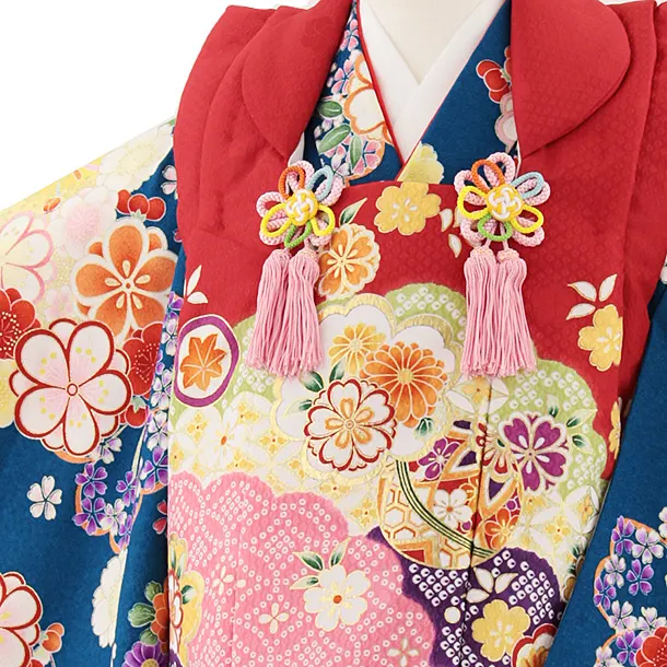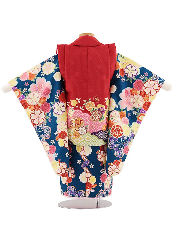 七五三レンタル(3歳女児被布)4823 赤 雲取り菊×青緑桜菊