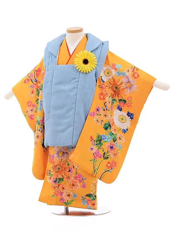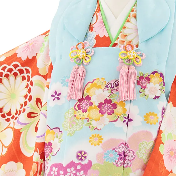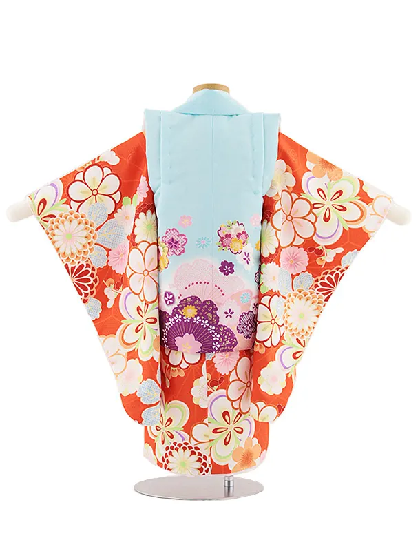 七五三レンタル(3歳女児被布)4841 水色桜×オレンジ梅菊