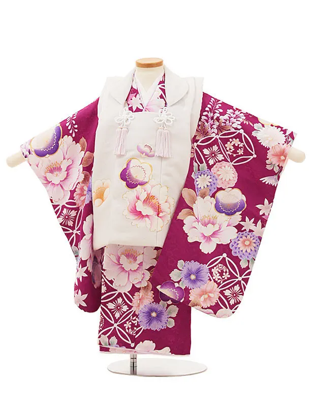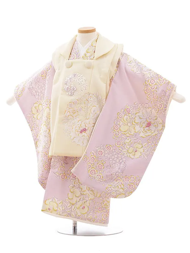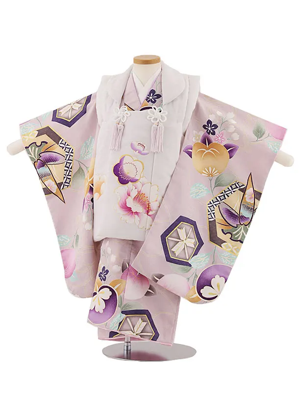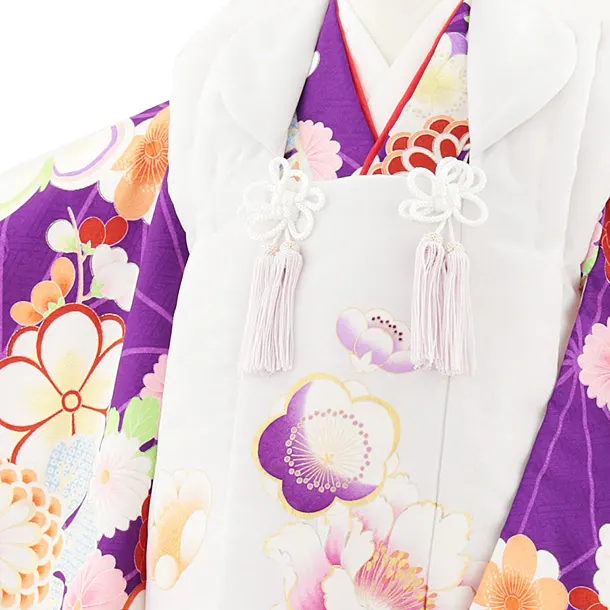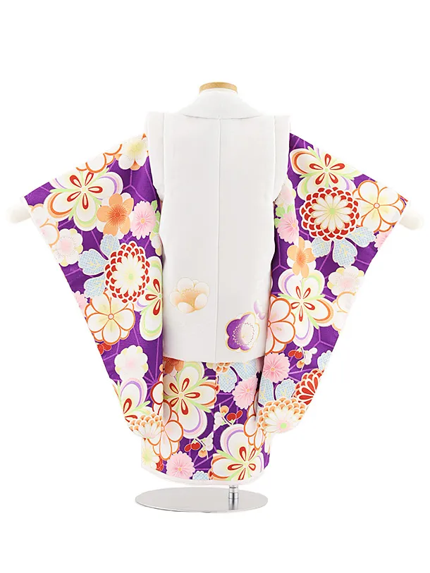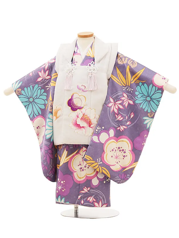 七五三レンタル(3歳女児被布)4849 白系×パープル梅菊