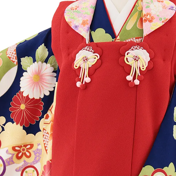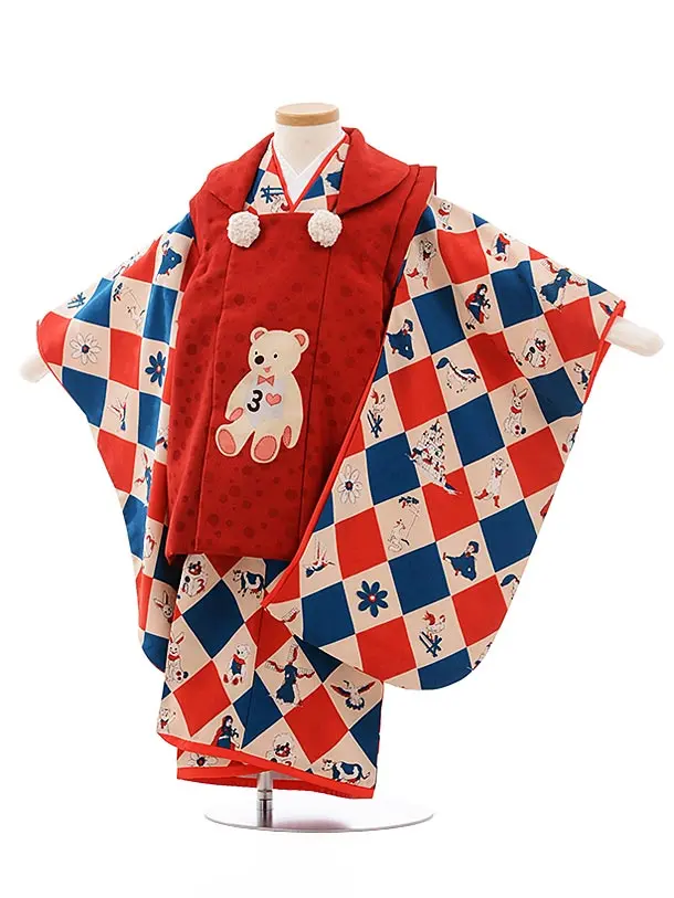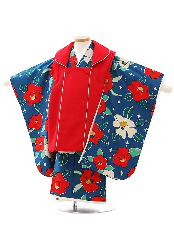 七五三レンタル(3歳女児被布)4853 赤×青地梅菊