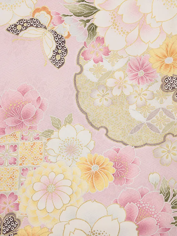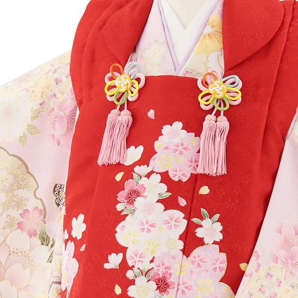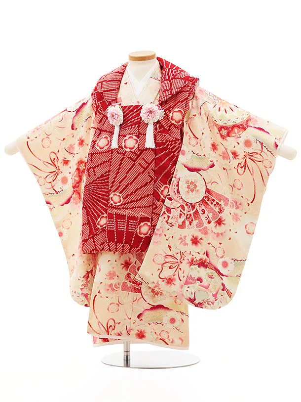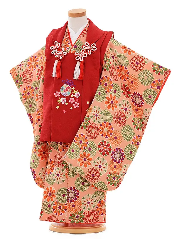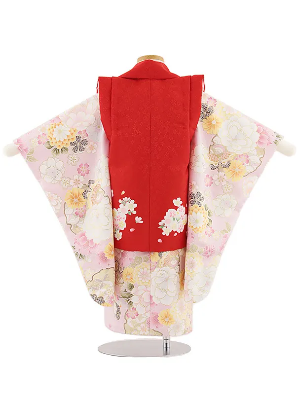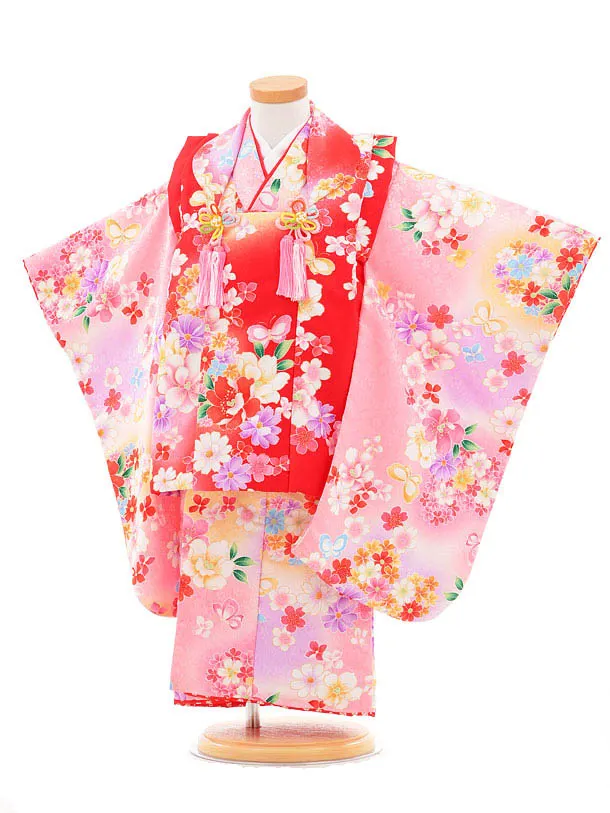 七五三レンタル(3歳女児被布)4859 赤地桜×ピンク雪輪に花蝶