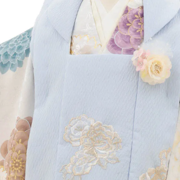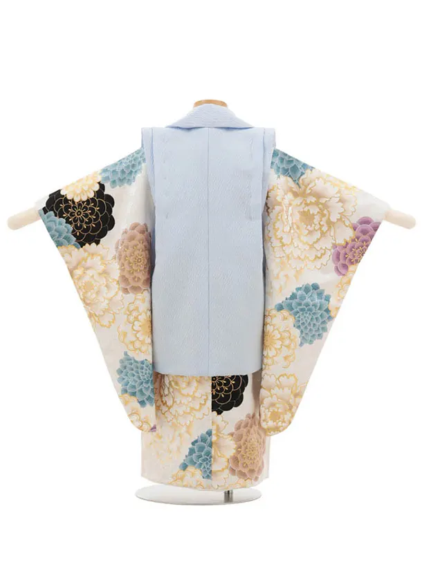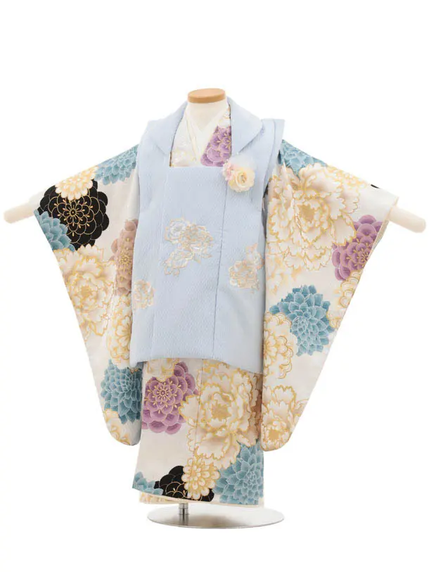 七五三レンタル(3歳女児被布)4883 花わらべ パープルブルー×白地華