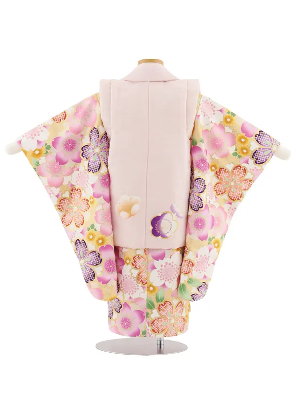 七五三レンタル(3歳女児被布)4888 ピンク×ベージュ地桜
