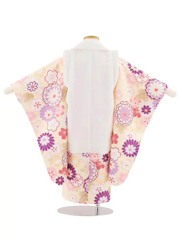 七五三レンタル(3歳女児被布)4890 白花刺繍×クリームピンクぼかし菊