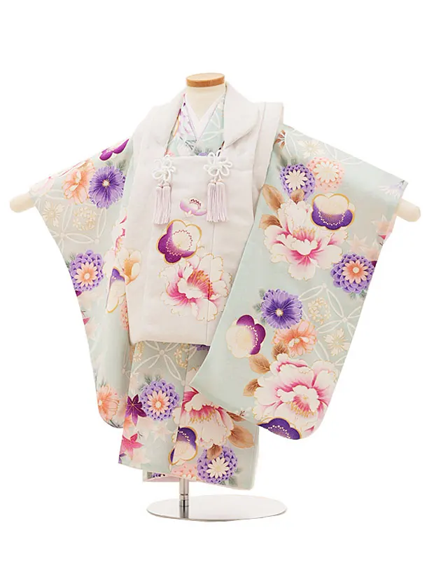 七五三レンタル(3歳女児被布)4893 アイボリー×淡ミント桜