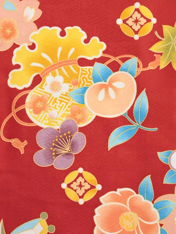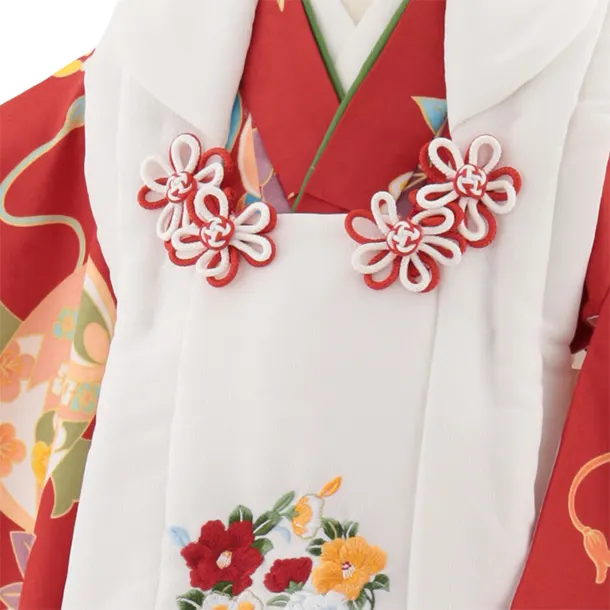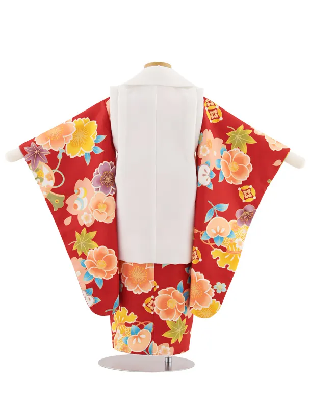 七五三レンタル(3歳女児被布)4894 白地刺繍花×赤地桜宝尽くし