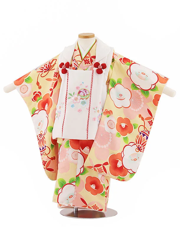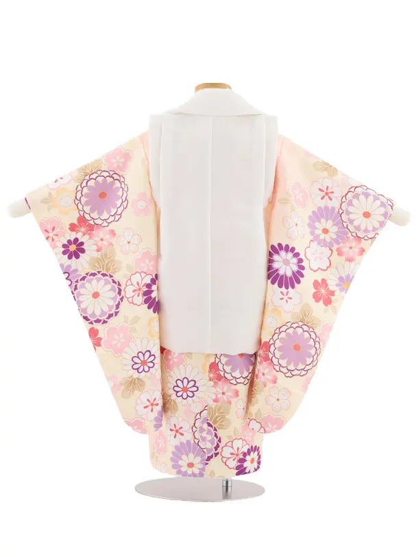 七五三レンタル(3歳女児被布)4897 白花刺繍×クリームピンクぼかし菊