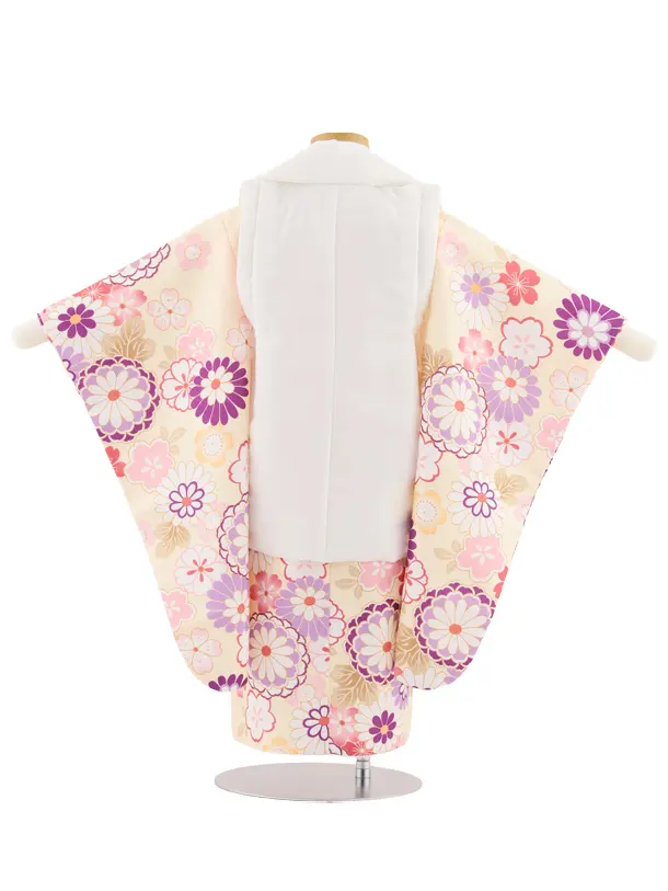 七五三レンタル(3歳女児被布)4898 白花刺繍×クリームピンクぼかし菊