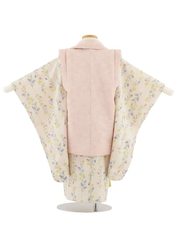 七五三レンタル(3歳女児被布)4902 ピンク変わり柄×ベージュ小花