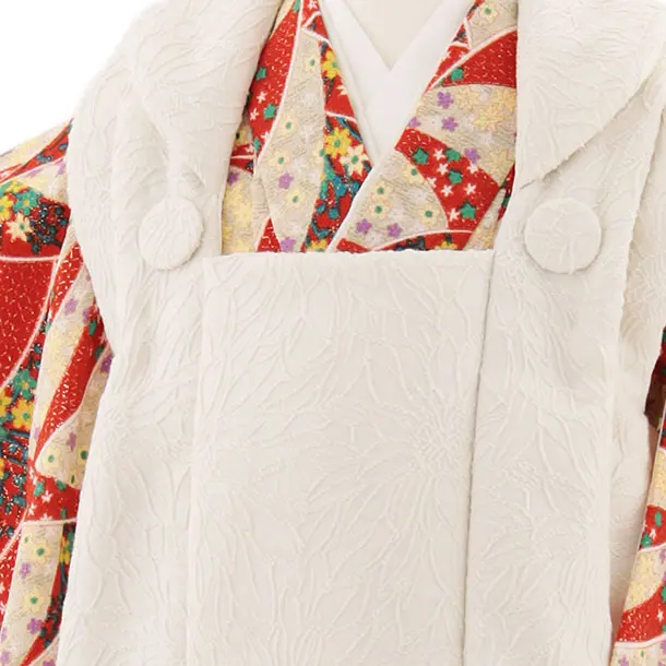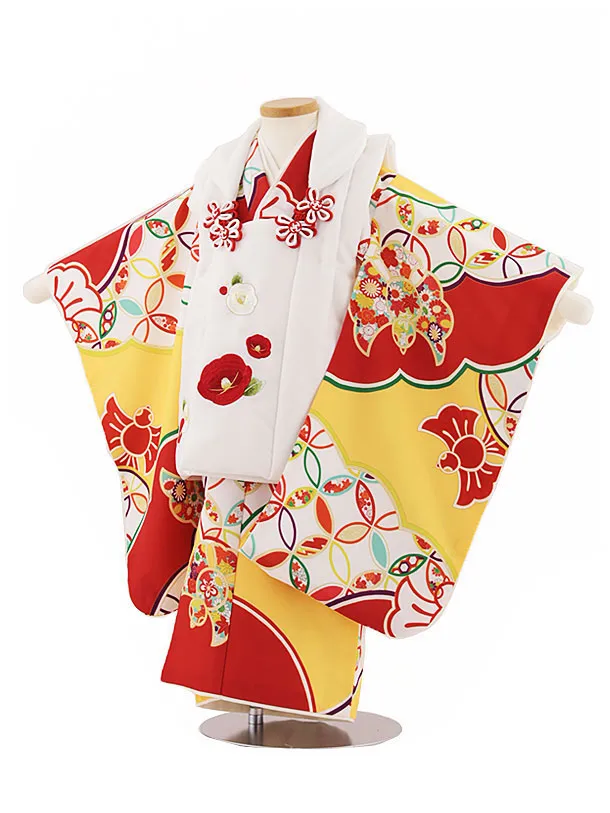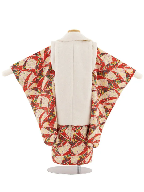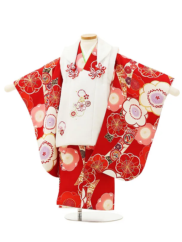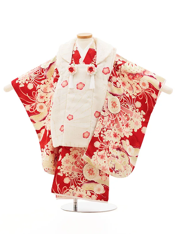 七五三レンタル(3歳女児被布)4906 アイボリー×赤和柄小花