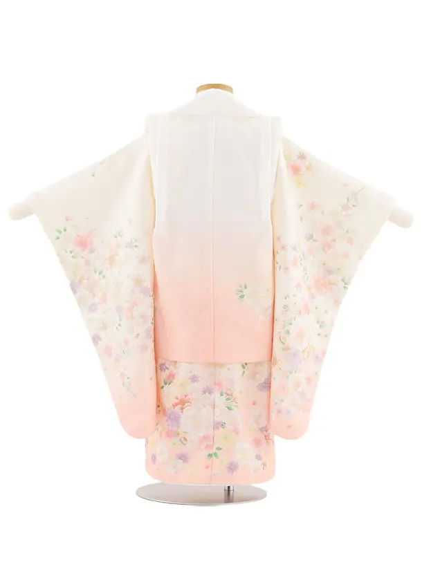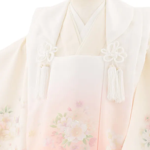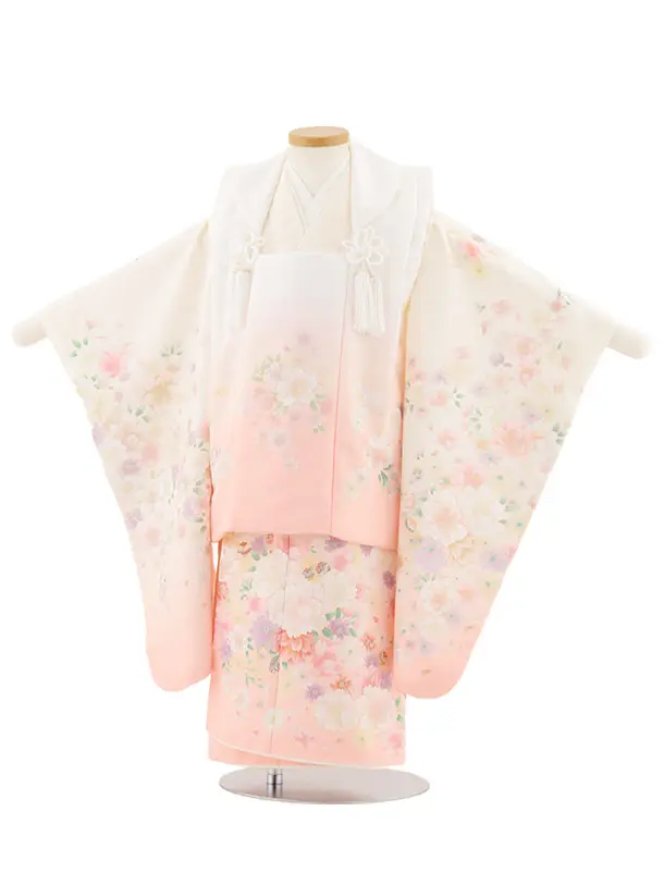七五三レンタル(3歳女児被布)4908 白地×クリームピンク八重桜
