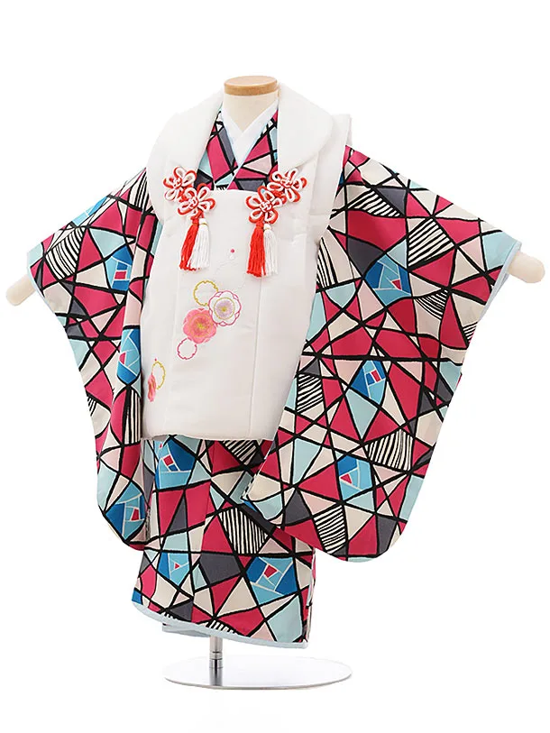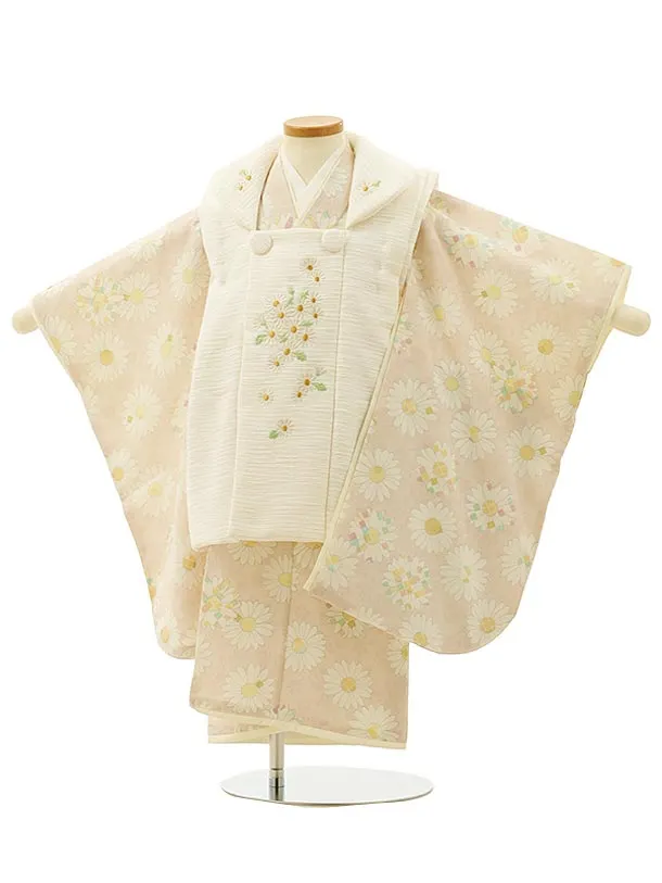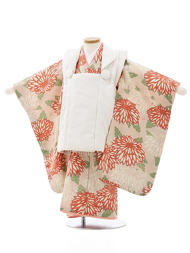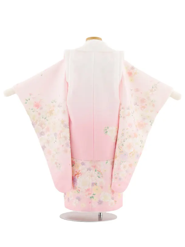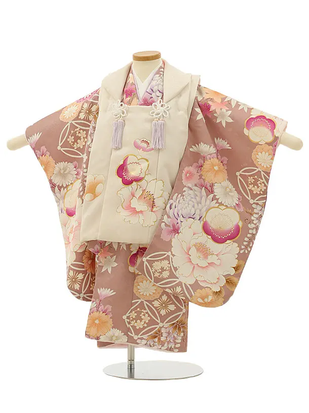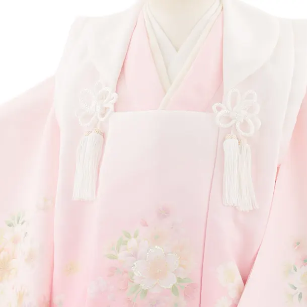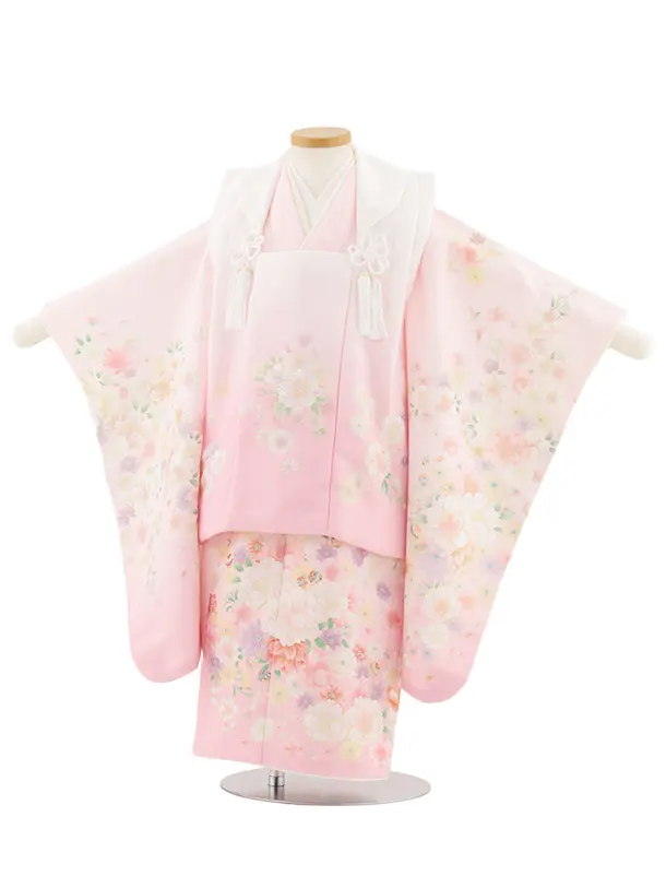 七五三レンタル(3歳女児被布)4909 白地×ピンク八重桜