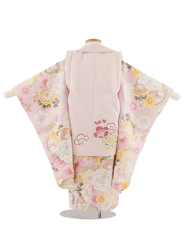 七五三レンタル(3歳女児被布)4914 ピンク×ピンク 雪輪に花蝶