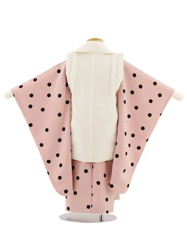 七五三レンタル(3歳女児被布)4917 アイボリー×ピンク黒ドット